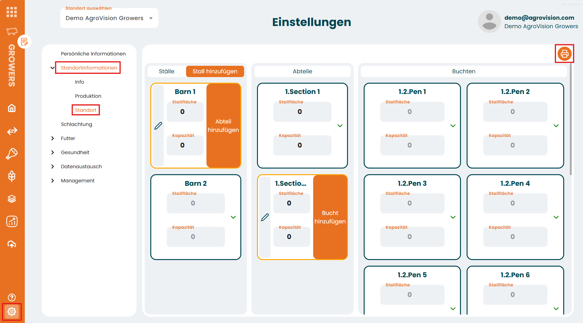 - Drücken Sie auf das Druckersymbol in der oberen rechten Ecke.