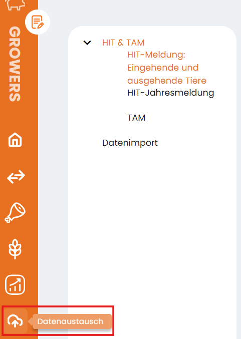 Gehen Sie zum Menü "Einstellungen" und wählen Sie „Datenaustausch“ -> „HIT & TAM“