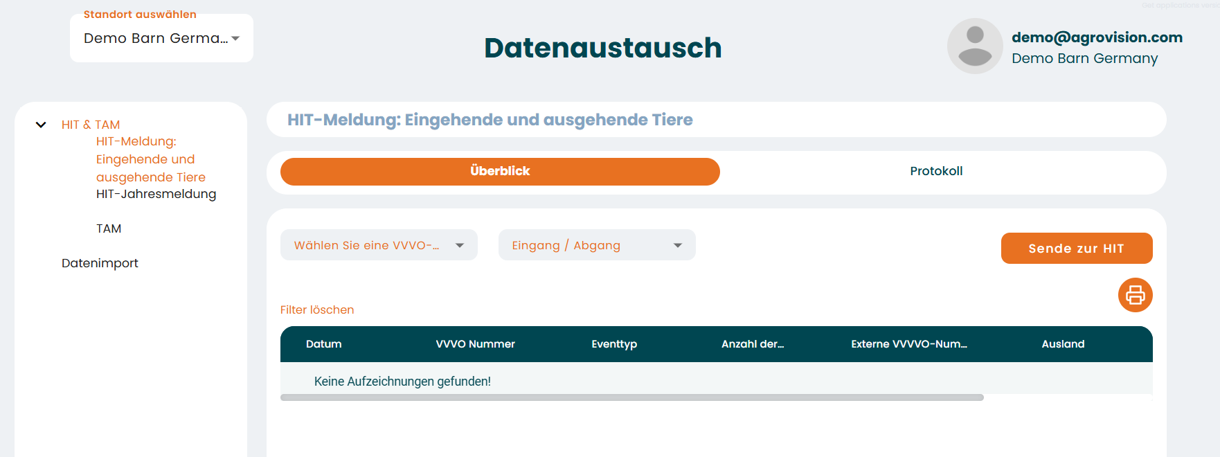 - HIT: alle ein- und ausgehenden Tiere (ohne tote Tiere) pro VVVO-Nummer